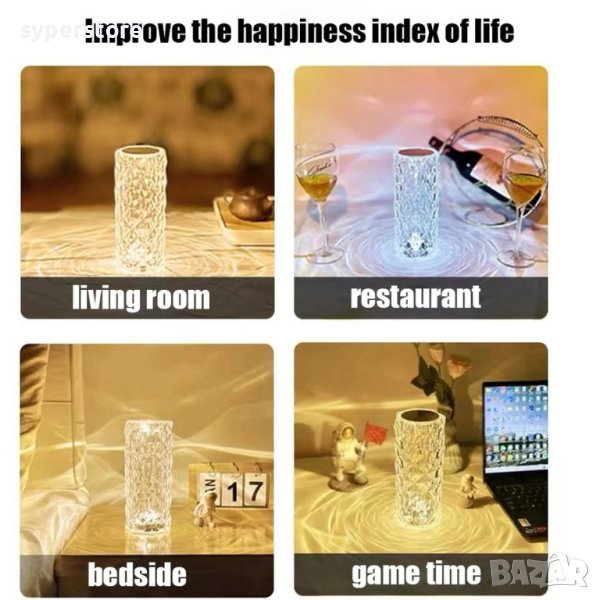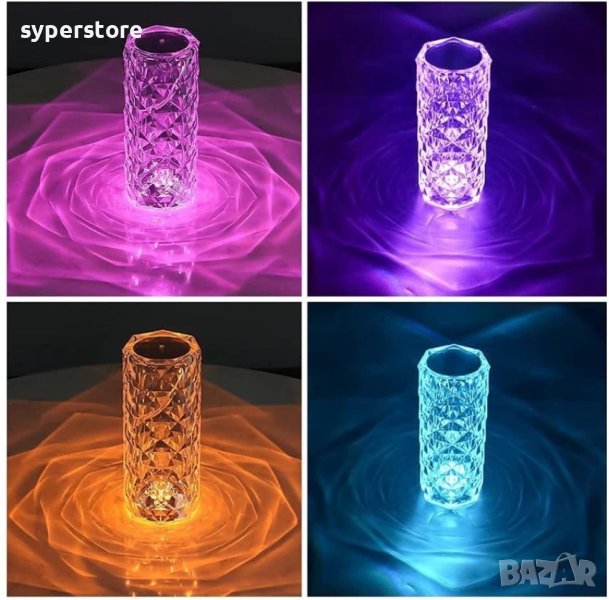 Лампа, нощна настолна лампа, кристална LED Digital One SP00830 16 цвята RGB, вградени батерии, Rose Diamond Table Lamp