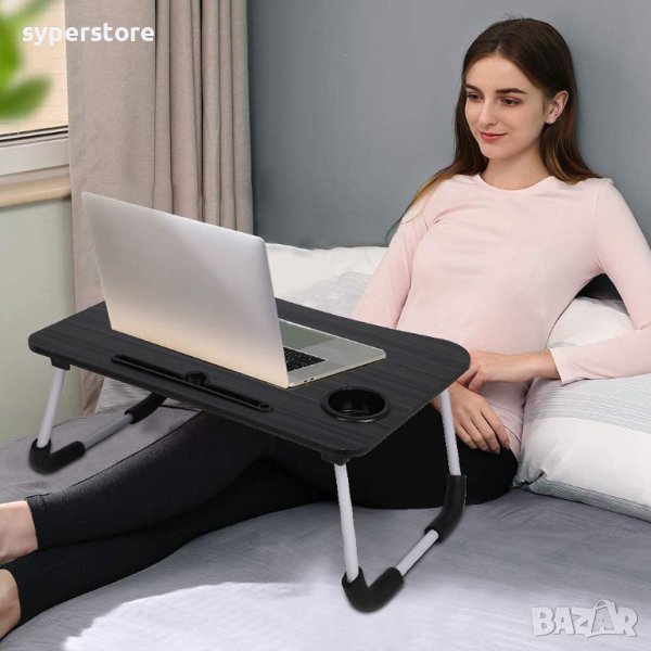 Масичка за лаптоп Поставка за лаптоп Digital One SP00836 дървена тъмен фурнир, с поставка за чаша и таблет