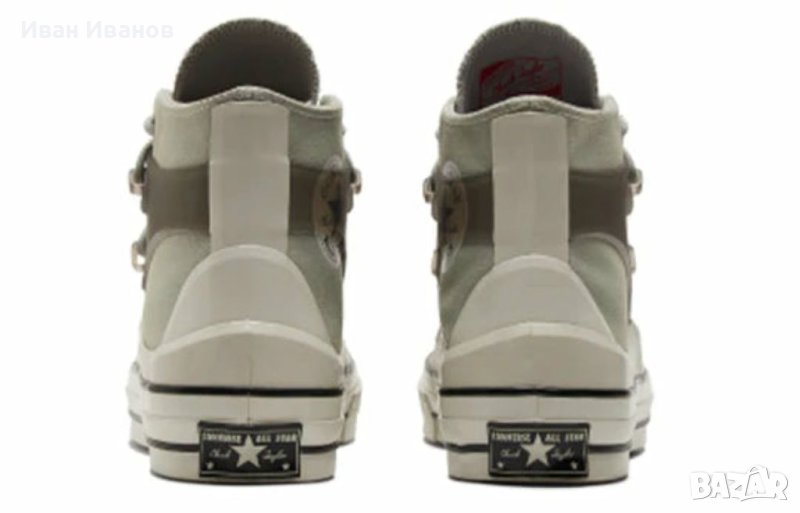 Стилът на открито се среща с ретро уличната мода от 90-те във високия платен Chuck 70 Utility. Полупрозрачна TPU клетка заема горната част от памучно платно в стила на модерни технически туристически обувки. Гумените покрития обгръщат горната част и петата, осигурявайки допълнителна защита от елементите. Завършен с чорап OrthoLite за комфорт под краката.