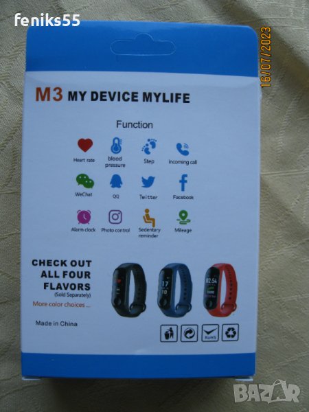 Фитнес гривната M3 разполага с LED дисплей, който показва часа, извървените крачки и сърдечния ритъм. Band 3 е интелигентна гривна, предназначена да следи физическото и здравословно състояние на потребителите по време на всяка дейност. Другите функции включват известия за повиквания и съобщения, синхронизиране със смартфони и наблюдение на множество данни: сърдечен ритъм, брой стъпки, часове на сън, изгорени калории и др. Силиконовата каишка е със специално противоалергично покритие, самата джаджа е влагоустойчива, а бутонът за управление е супертънък. Батерията е изключително издръжлива, осигуряваща до 15 дни работа без презареждане.