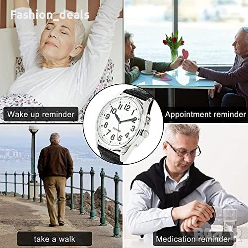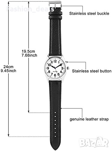 Лесен за разчитане бял циферблат: Часовникът има лесни за разчитане арабски цифри, което го прави подходящ за хора с увредено зрение.