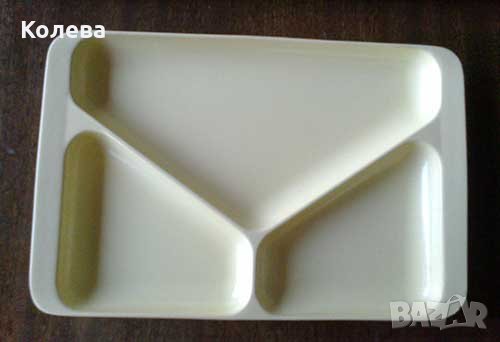 628. Ордьоври Два пластмасови съда за ордьовър. Не личи да са ползвани. Кръглият е от лека пластмаса, имитираща светло дърво. Размери 24 на 3 см. С пет отделения.