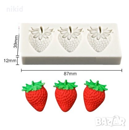 3 красиви ягоди ягода силиконов молд форма фондан шоколад декор → Обява 41580462