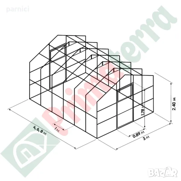 3 x 6 x 2,4 м – 970,94 € / (1 899,00 лв)