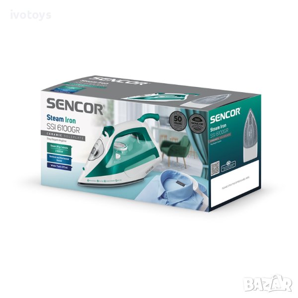 Парна ютия SENCOR SSI 6100GR, 2600W, Система Anti-Calc, Зелен/Бял → Обява 41584313