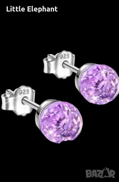 Сребърни обеци топчета,кристали,purple/нови