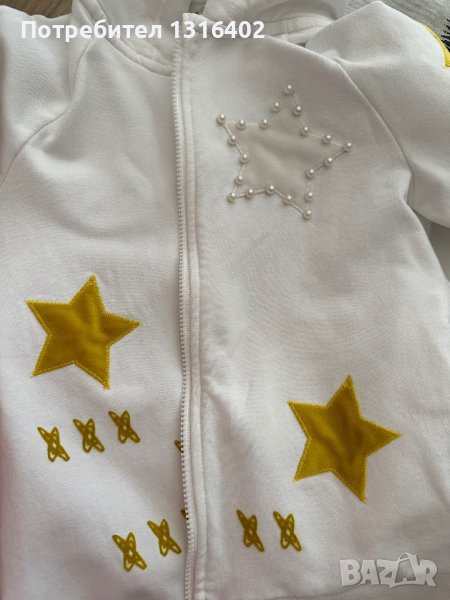 Мек памучен бял суичер, марка “Original marins”, за момиченце 5-6год, 116см, без никакви забележки.