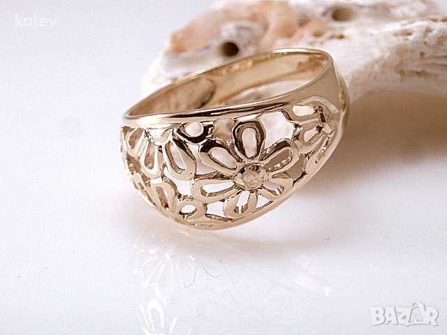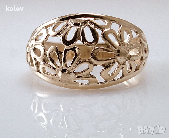Златен пръстен с флорални мотиви, цветя МАРГАРИТИ изработен в ДУХА НА СТАРИТЕ БЪЛГАРСКИ КОЮМДЖИЙСКИ ТРАДИЦИИ