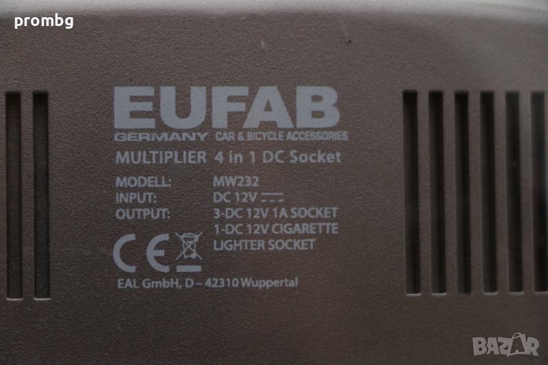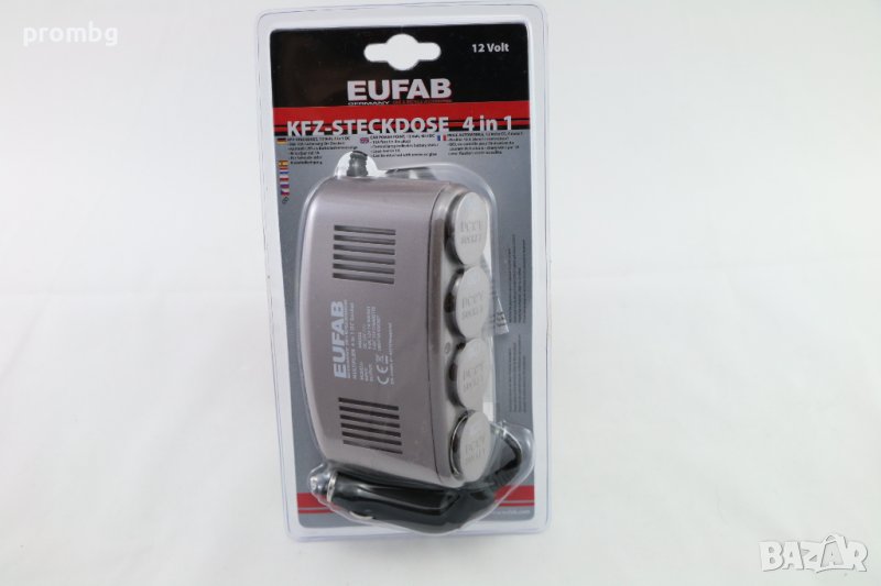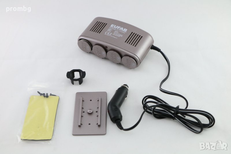 зарядно за автомобил, авто разклонител 12V, EUFAB - Германия. Модел 4 в 1,10А, гнезда: 3 x 12 V и1 x запалка за цигари. Тегло 300 гр. Прикрепя се, чрез залепяне или завинтване. Дължина на кабела: приблизително 1 м. Цвят: антрацит Изпращаме с Еконт