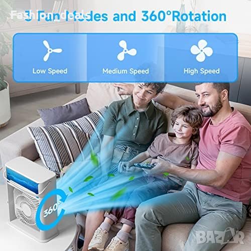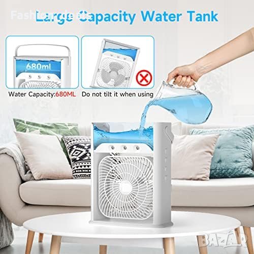 Охладител на въздуха, овлажнител за мъгла, настолен вентилатор и нощна лампа.
