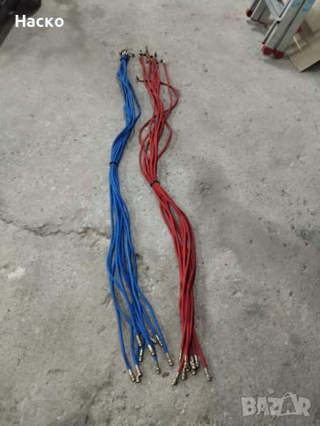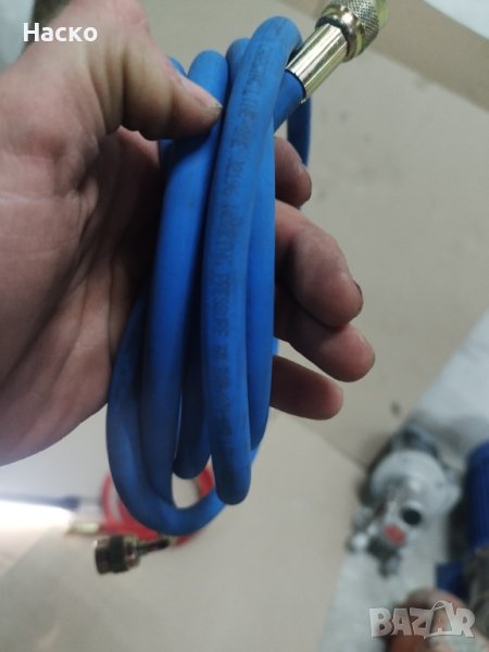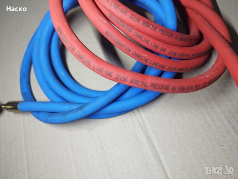 Маркучи за зареждане на фреон . Маркучите са с работна налягане 60 бара и дължина 2.2 метра. Посочената цена е за к-кт маркучи -син и червен. По отделно цената е 20 лв за брой.