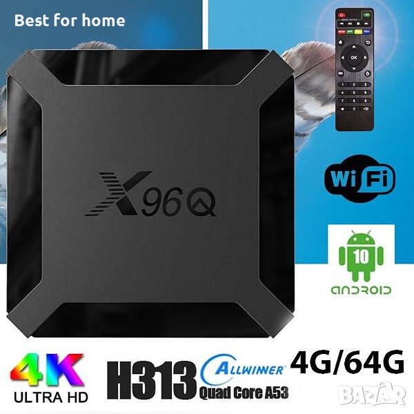 ТВ Бокс X96Q е с четириядрен процесор Allwinner H313 Quad core ARM Cortex-A53 ARM® ™-A53 и s Петядрен Mali-G31 OPenGL ES3.2 TV графичен ускорител. Приставката е с вградена 4GB DDR3 RAM памет и 64GB EMMC flash памет. Устройството е с Android 10 с меню на Български и още многи езици.