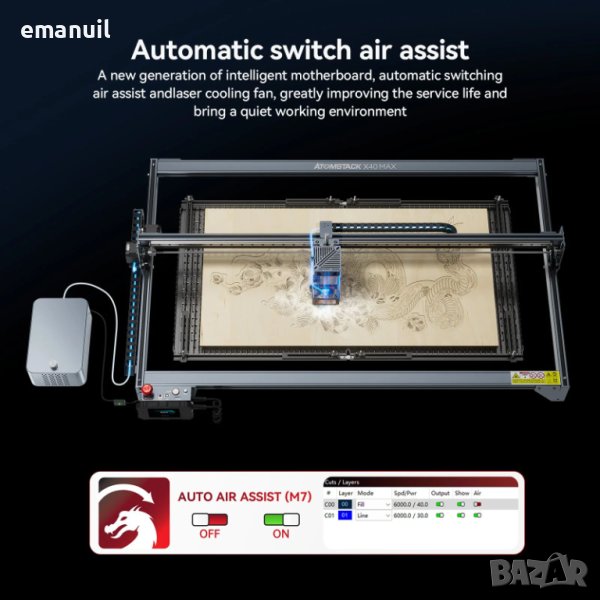 ATOMSTACK S40 48W Pro 3400лв. Max 4000лв. CNC лазер лазерно гравиране