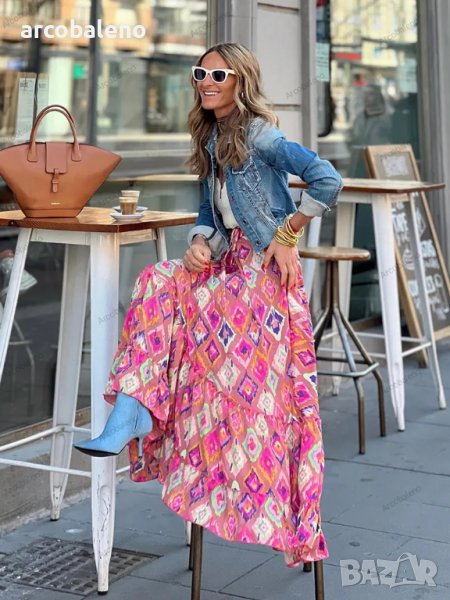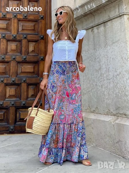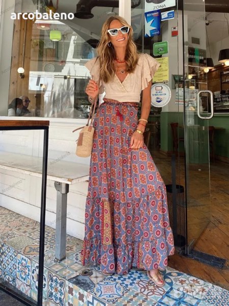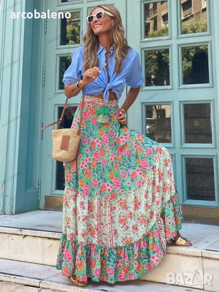 Дамска дълга пола с щампа и волани, с уличен темперамент. Моля, използвайте таблицата с размери. Преди да изберете размер, моля, прочетете внимателно всеки елемент от таблицата с размери. Уникален дизайн, класически стил, ежедневна и удобна. Подходяща е за излизане и свободно време. Размерът се измерва ръчно и грешката от 1-3 см е нормална.
