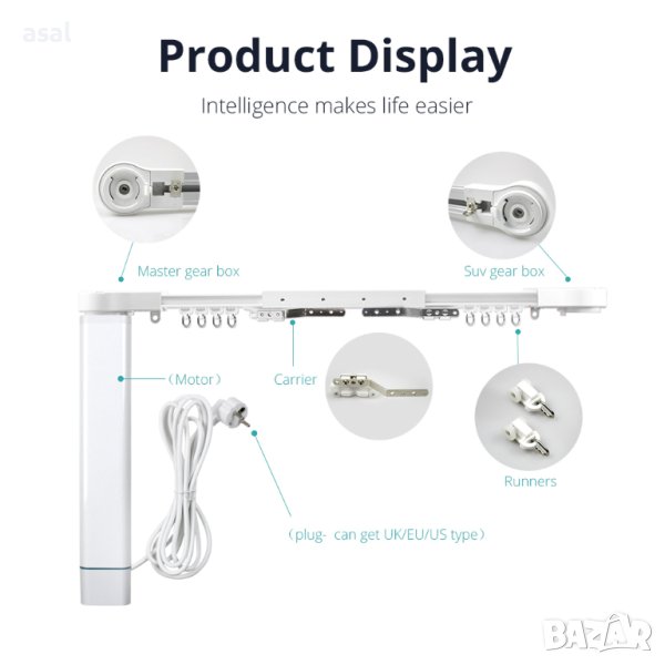 Автоматична електрическа смарт Wi-Fi релса за завеси