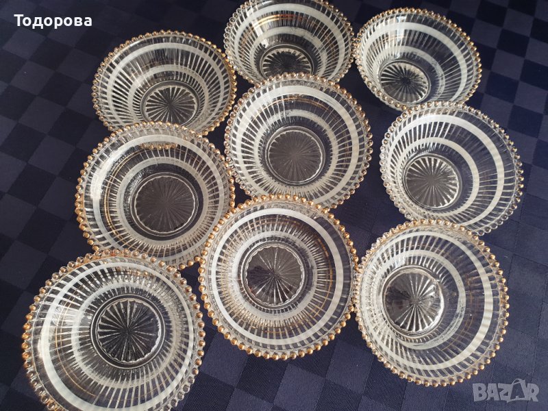 Стари стъклени купички с богата позлата - 9 броя. → Обява 41593001