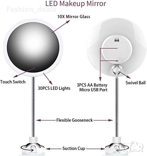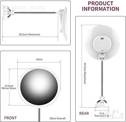 10X увеличение за прецизно гримиране и грижа за кожата LED естествена дневна светлина за истински цветове Мощно заключващо се засмукване за гладка повърхност Гъвкаво гъше гърло за 360° въртене и идеален ъгъл Преносим дизайн, идеален за пътувания
