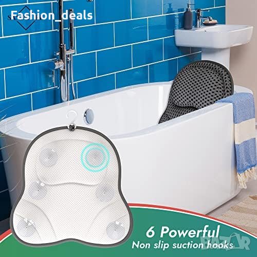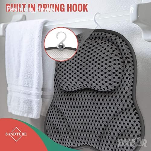 Луксозна сива възглавница за баня Супер комфорт и плътност Ултра бързо съхнене с дишаща мрежа 6 вендузи за сигурно прикрепяне Подходяща за всяка вана, спа, джакузи Вградена кука за лесно съхранение Идеален подарък за жени