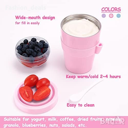 Нова Изолирана чаша за кисело мляко плодове с капак/неръждаема стомана