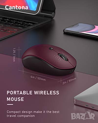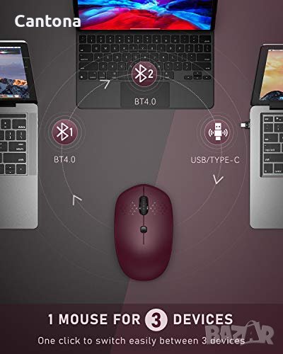 Bluetooth мишка за многофункционална употреба. Тази мишка може да свързва до 3 устройства едновременно чрез: Bluetooth 4.0 + Bluetooth 4.0 + USB или Type C приемник. Може лесно да се превключва от 3 компютъра с едно „щракване“ Презареждаема безжична мишка с вградена акумулаторна батерия, няма повече притеснения за смяна на батерии, може да се зарежда лесно с микро USB кабел(не е включен). Бутон за превключване на DPI в горната част на мишката, можете да настроите DPI: 1000-1600-2400, за да отговори на различни изисквания Оборудван с бутон за включване/изключване на захранването на гърба на мишката за лесно управление. Освен това мишката ще премине в режим на заспиване след 10 минути неактивност и може лесно да се активира чрез натискане на левия/десния бутон Невероятна съвместимост Windows 8, Windows 10 или по-нова версия; Mac OS X 10.10 или по-нова версия; iOS 13 или по-нова версия; Android 4.