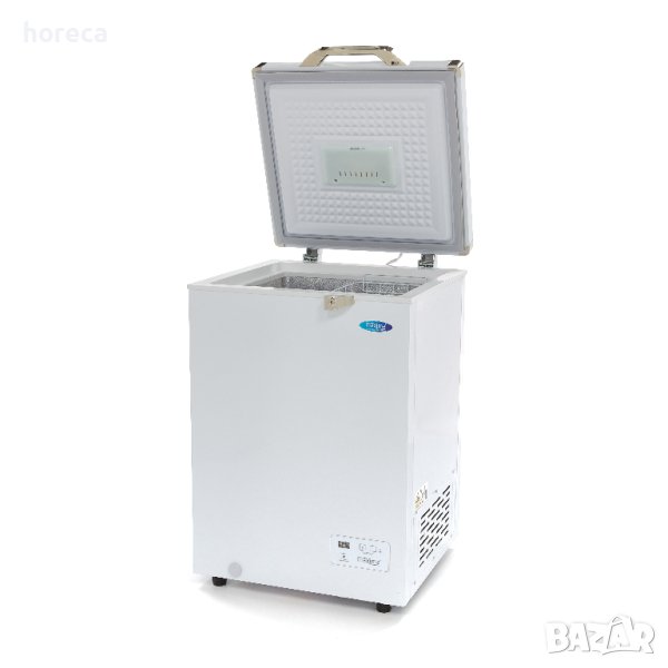 Оптималният температурен диапазон в околната среда е от 3°C до 38°C. С тегло от 27 кг и капацитет от 93 л, този фризер предоставя достатъчно пространство за съхранение на хранителни продукти. Фризерът предлага удобство и ефективност при съхранение на храни в професионални кухни.