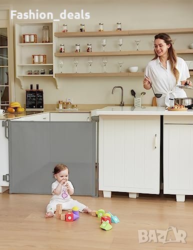Осигурява безопасност за бебетата и може да се използва и като порта за домашни любимци, за да ограничава движението им
