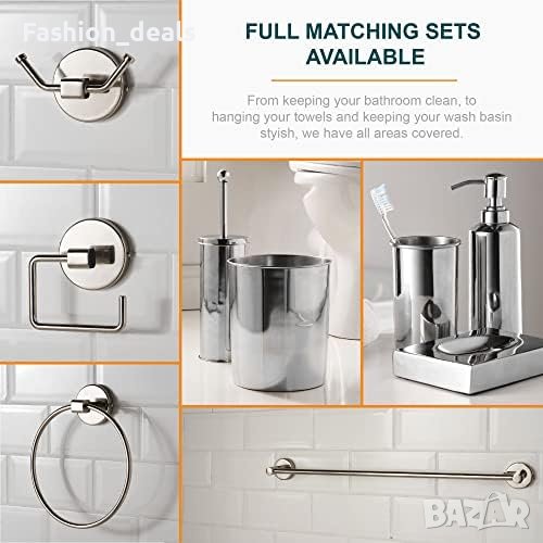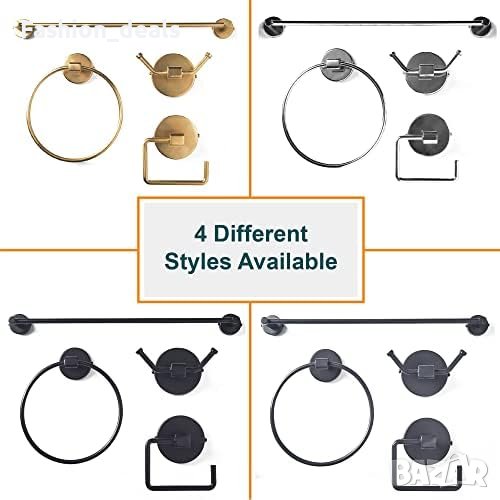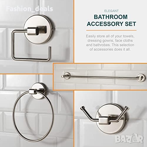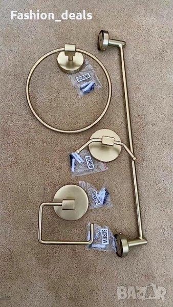 Комплект аксесоари за баня, включващ 3 поставки за кърпи и поставка за тоалетна хартия