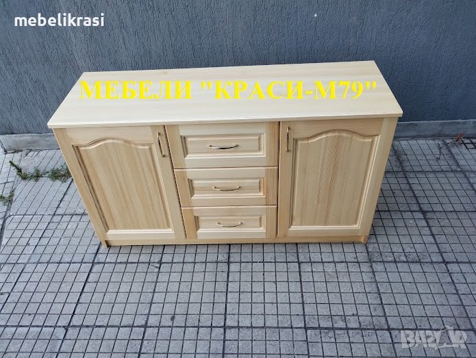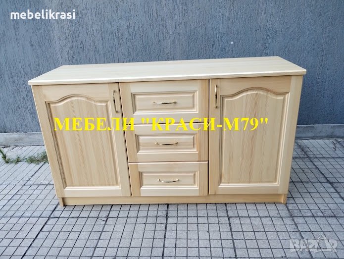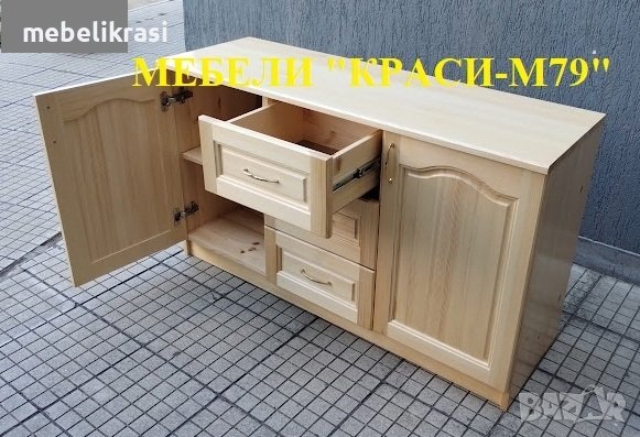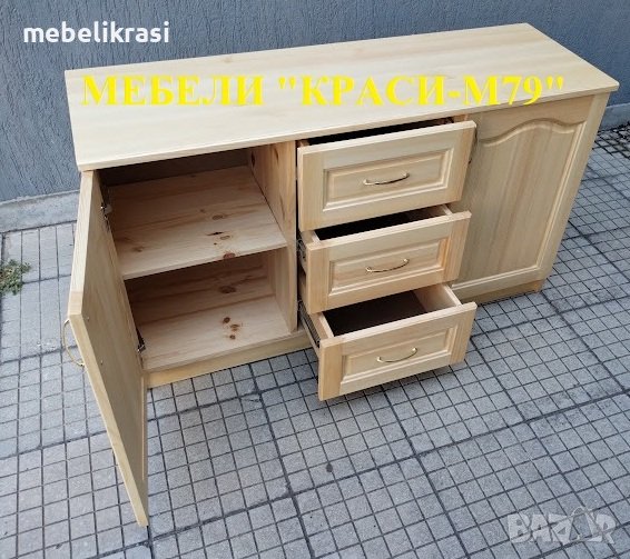 Скринът е изработен изцяло от естествено дърво. С 3 чекмеджета с телескопичен механизъм и 2 врати с плавно затваряне.