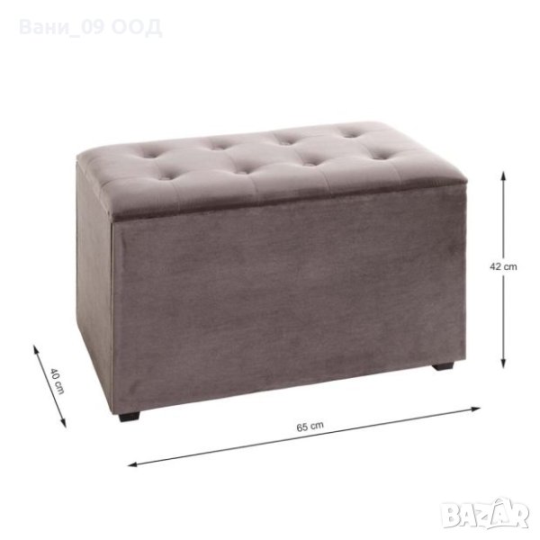 Пейка-ракла с размери Ш:65/Д:40/В:42 см. Моделът е произведен от MDF, тапициран с висококачествен текстил. Капакът на раклата е с пълнеж от пяна, за повече удобство по време на седне, като след повдигането му е достъпна ниша за съхранение.