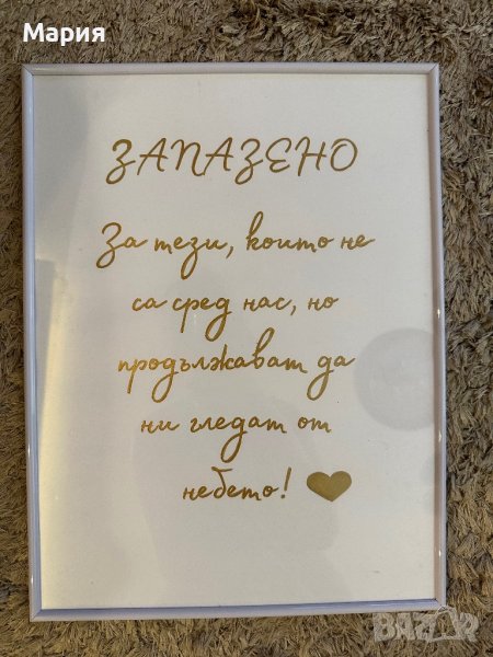 Табела за сватба “ЗАПАЗЕНО за тези, които не са сред нас”, снимка 1 - Декорация - 41601948 Табела за сватба “ЗАПАЗЕНО за тези, които не са сред нас”, снимка 2 - Декорация - 41601948 1/2