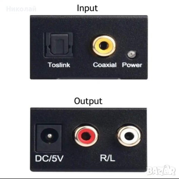 Той преобразува коаксиални или Toslink оптичен цифров аудио сигнали в аналогови L / R аудио.