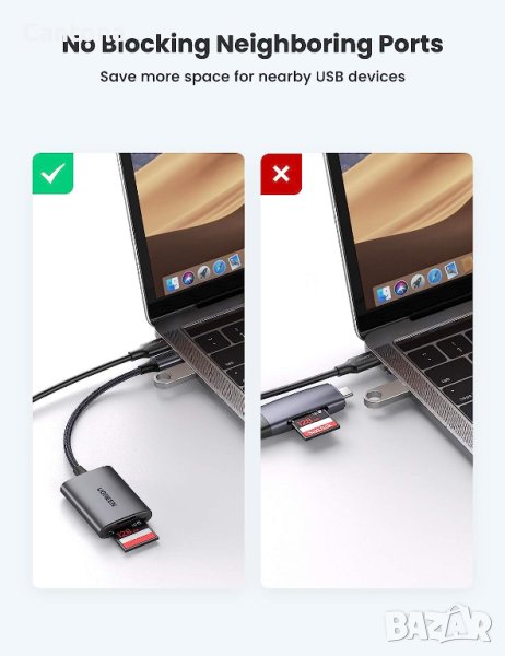 - UGREEN USB C четец на карти с памет поддържа трансфер на данни до 5Gbps и капацитет на картата с памет до 2TB, 10 пъти по-бързо от USB 2.0 (480Mbps), което ви позволява да прехвърляте HD филм или файлове за секунди.