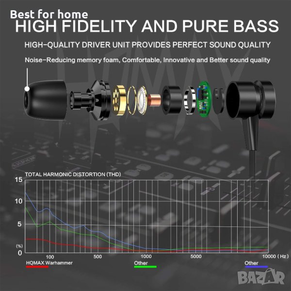 Високо качество на звука - в днешно време музикалната индустрия предоставя ясно различен звук. Кабелните слушалки HQMAX Warhammer имат оптимизиран високоговорител за професионално слушане, предлагайки ви уникално и завладяващо музикално изживяване. Този продукт е проектиран да бъде фантастичен.