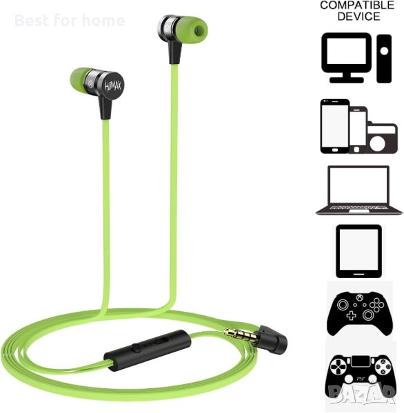 Слушалки HQMAX Warhammer с микрофон, издръжливи кабелни слушалки, иновативни слушалки за поставяне в ушите от мемори пяна, слушалки с микрофон и 3,5 мм тапа с нитове, зелени