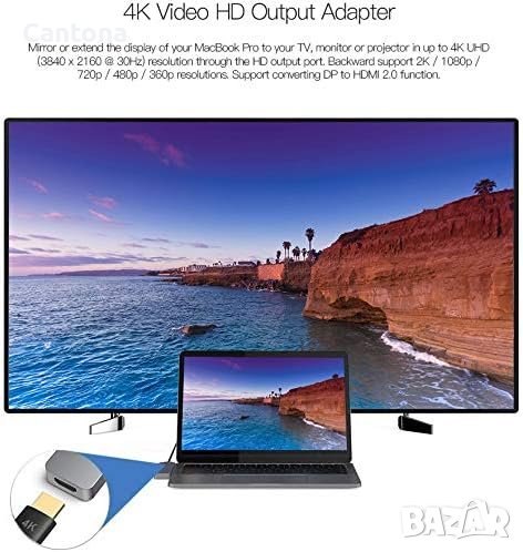 - Отразете или разширете екрана си с USB-C хъб HDMI порт и директно предавайте поточно видео с разделителна способност 4K UHD (3840x2160 @ 30Hz) към вашия телевизор, монитор или проектор. Насладете се на 4K визуално изживяване от игра/филм/футбол! Обратно съвместим с 1080p/720p/480p/360p резолюции.