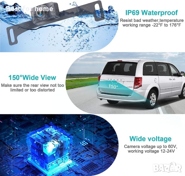 100% водоустойчива камера за заден ход за автомобил ]: С водоустойчив сертификат IP69, тази система за резервна камера за камион може да издържи дори на най-суровите метеорологични условия и да продължи да функционира перфектно.