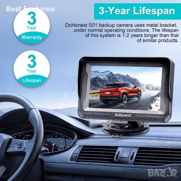 DoHonest Водоустойчива камера HD 1080P за задно виждане в комплект с монитор