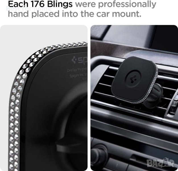 Spigen OneTap Bling (MagFit) Проектиран за Magsafe Car Vent Mount Ръчно поставени 176 Bling кристали Съвместими с iPhone 14,13,12 серия (магнитно левитиране на iPhone 14, 13,12 серия)