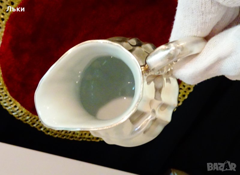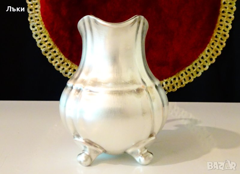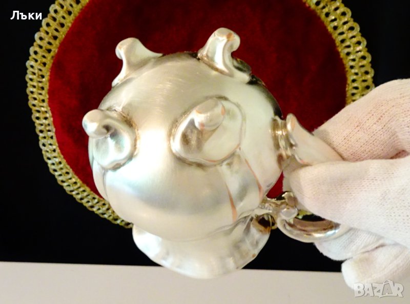 с ефектен бароков релеф.Каничката има дебел обков от чисто сребро проба 1000,маркирана.Стои