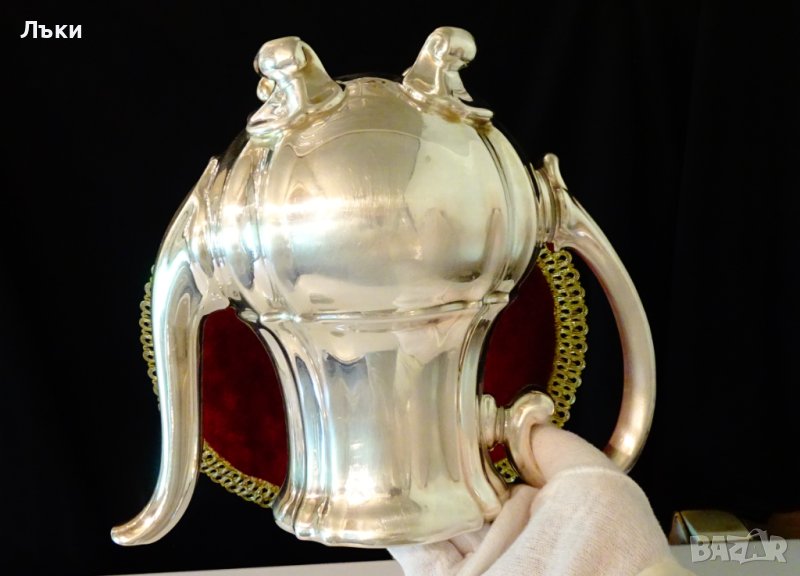 на четири извити барокови крачета.Височина 25 см.,дължина 25 см.,диаметър 16