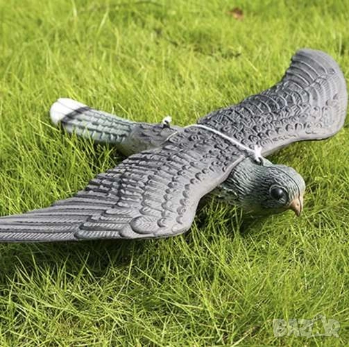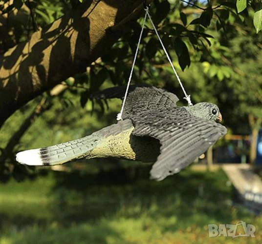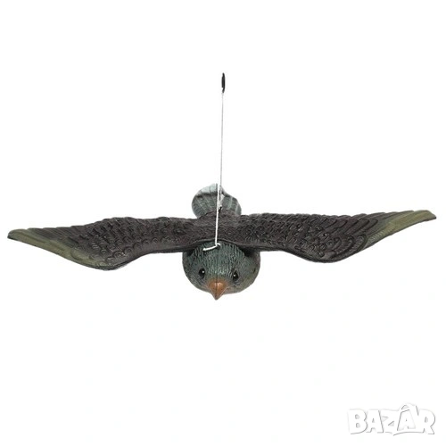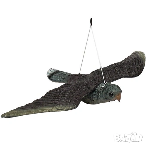 Това ефективно плашило във формата на сокол е създадено, за да отблъсква нежелани птици като гълъби, скорци и други вредители по напълно безопасен начин. Благодарение на изключително реалистичния дизайн – детайлно пресъздадени крила, пера и форма на клюна – фигурката наподобява истински хищник и създава усещане за опасност у по-малките птици, което ги кара да избягват зоната.