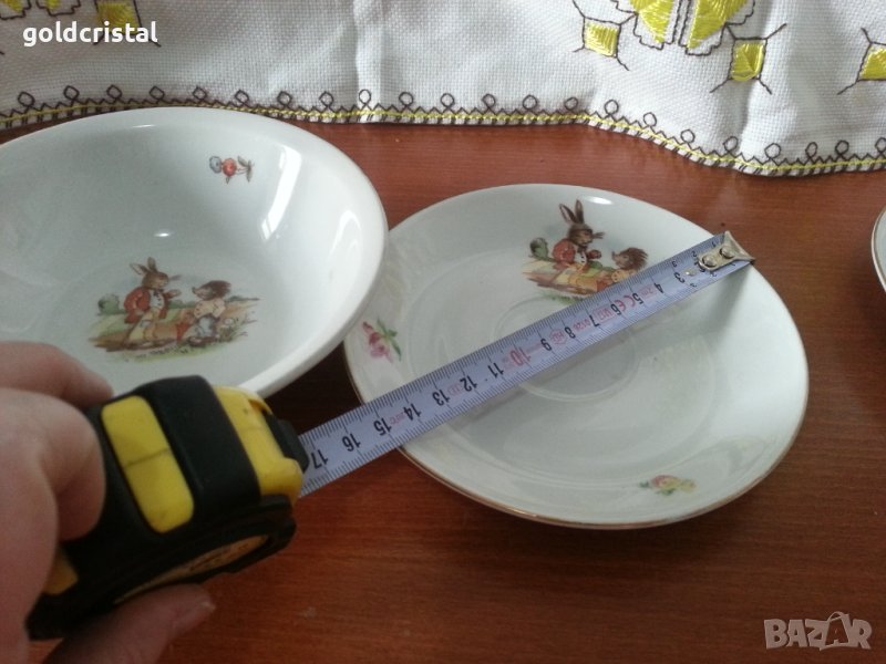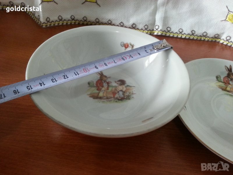 Стар български порцелан детски комплект за хранене купичка и чинийка без чукнато и пукнато златен кант поизтрит сервизкомплект сет лот ретро арт декор винтидж колекция стари антикварни предмети обзавеждане за дома и семейството подходящи за подарък за ценители и колекционери
