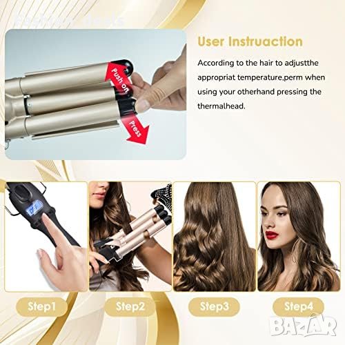 Тройна маша за коса: Създава естествени и елегантни къдрици за минути.