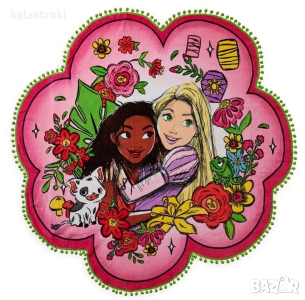 Прекрасна голяма плажна кърпа с Принцесите (Рапунцел, Ваяна)