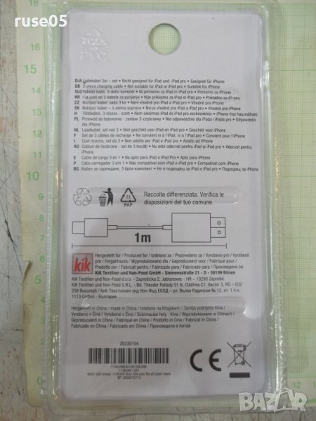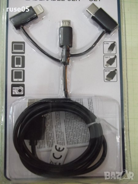 Кабел "Kik" 3 в 1 за зареждане черен нов → Обява 41620976