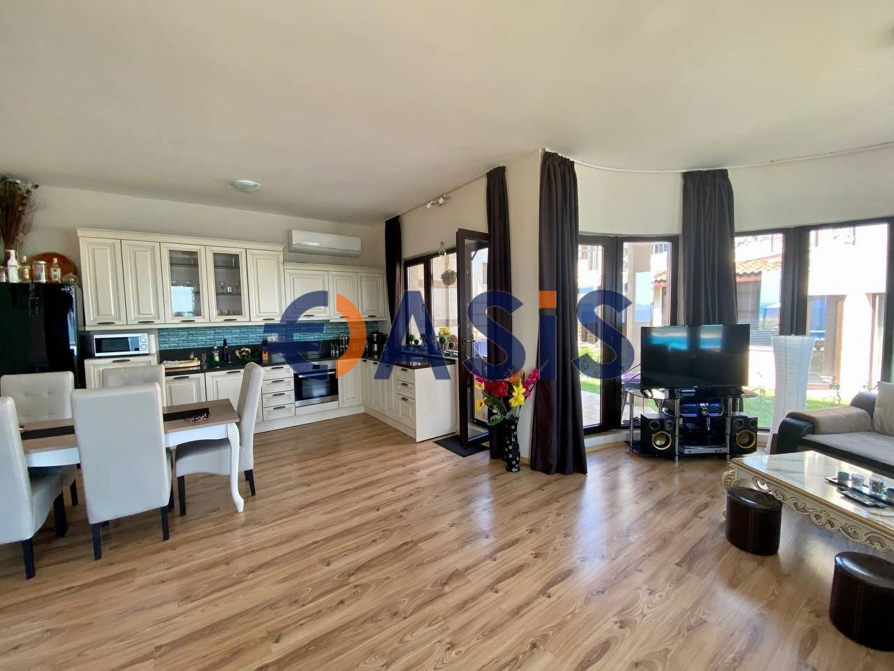 За продажба се предлага просторна градска къща с три спални на първа линия на морето в комплекс от затворен тип 'Маджестик Сий Вилидж', между Поморие и кв.Сарафово, Бургас. Предимството на къщата е невероятна гледка към морето с хол, спални, тераси. На първия етаж има много голяма всекидневна, напълно оборудвана кухненска част, уютна тераса, отделна баня с тоалетна, комбинирана с мокро помещение с пералня. Има и малка килерче.