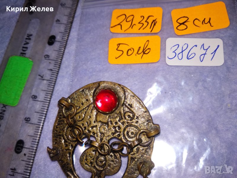 СТАРИННА ВЪЗРОЖДЕНСКА АЖУРНА БОРНЗОВА ОРНАМЕНТИРАНА РЕТРО БРОШКА РЯДКА РЪЧНА ИЗРАБОТКА 38671