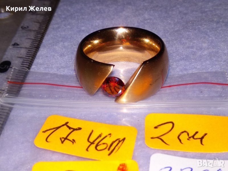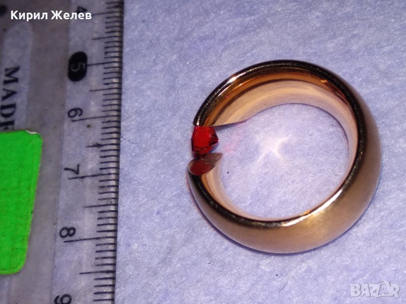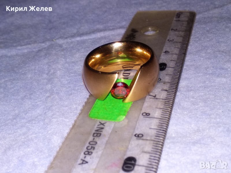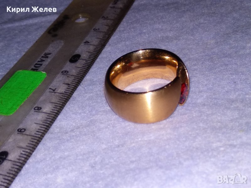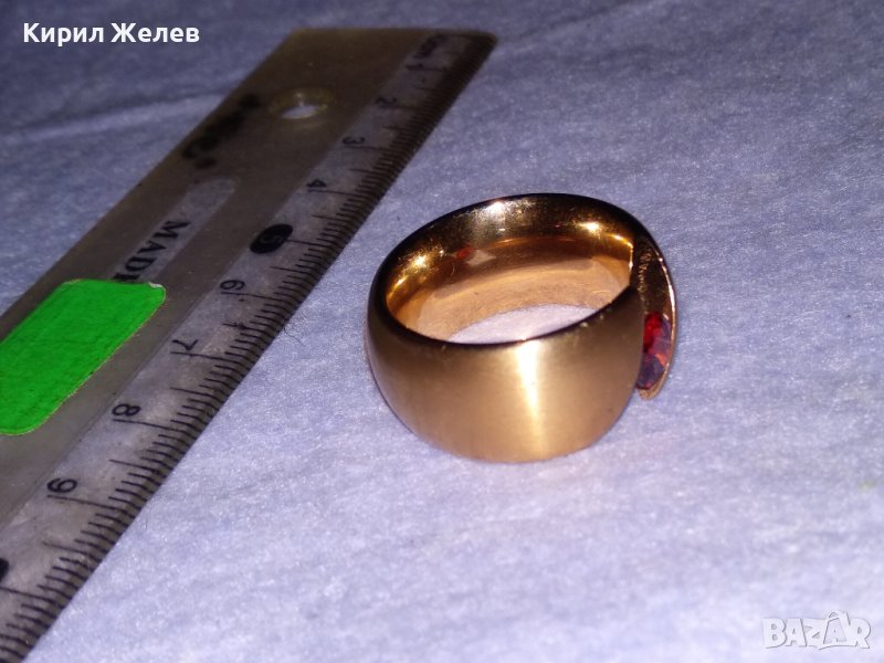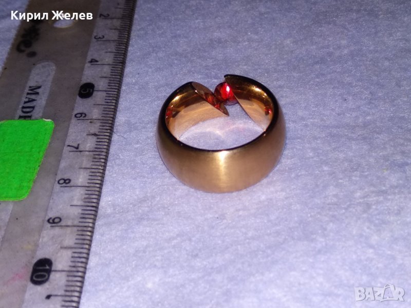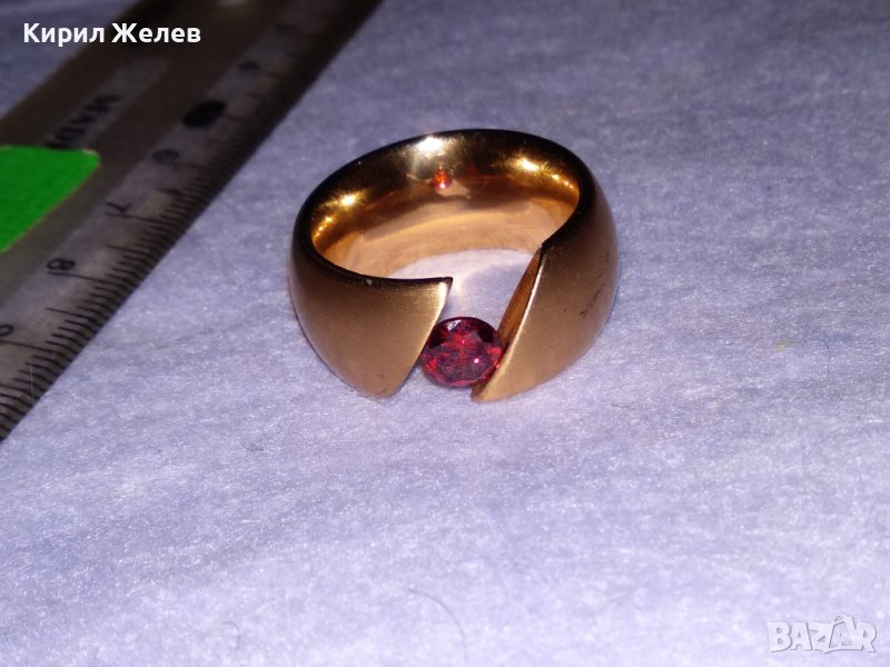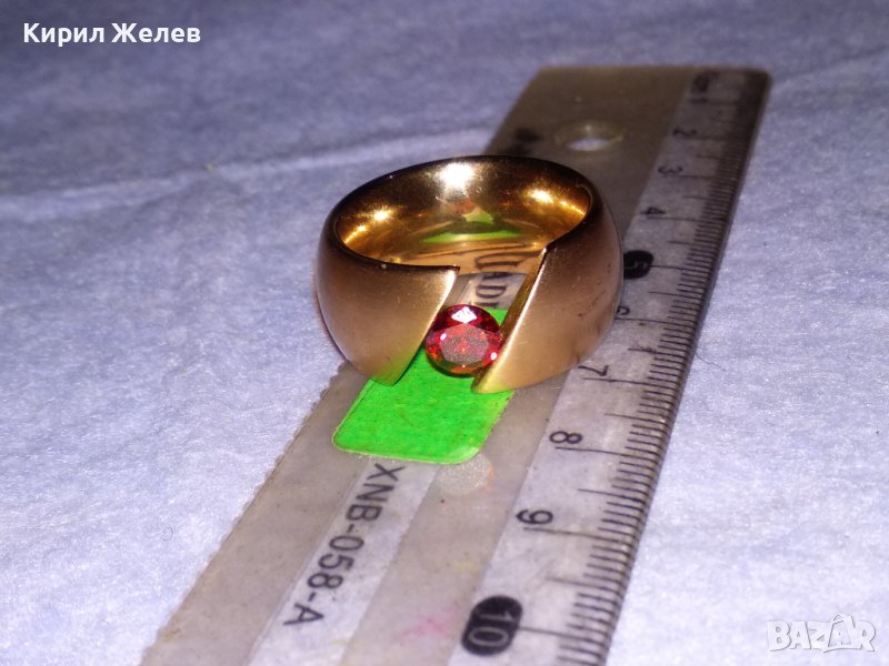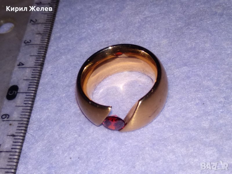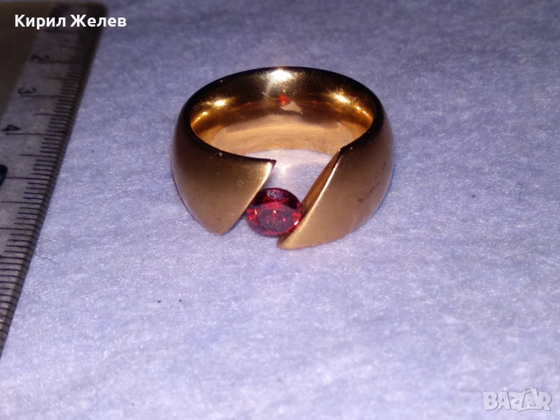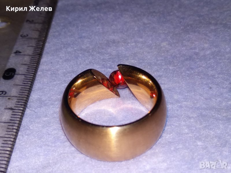ВЕЛИКОЛЕПЕН с ДЕБЕЛА ПОЗЛАТА и ФАСЕТИРАН ГРАНАТ АРТ ПРЪСТЕН от БЛАГОРОДНА НЕРЪЖДАЕМА СТОМАНА 38670