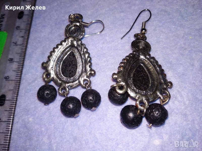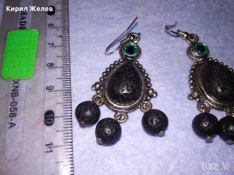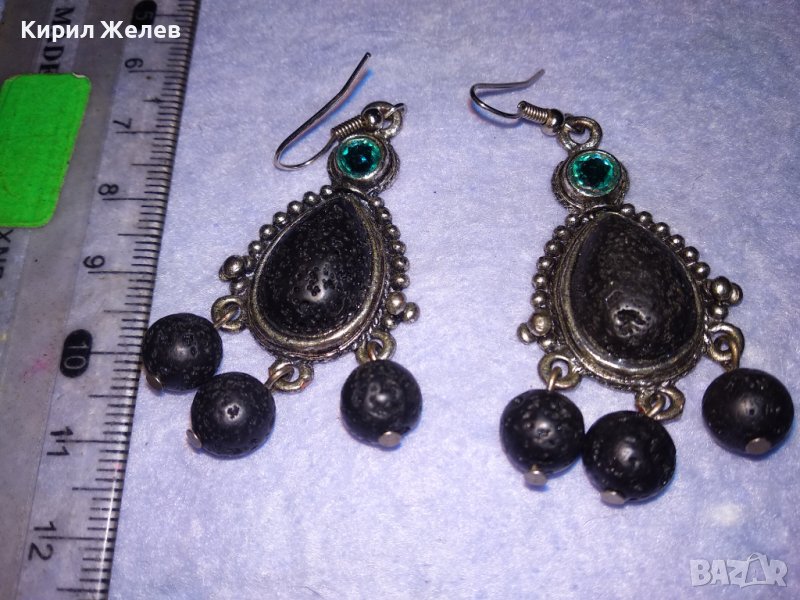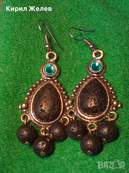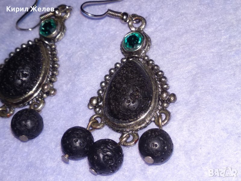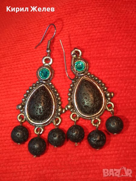 АРТИСТИЧНИ ВИНТИДЖ АРТ СРЕБРИСТИ МЕДНИ ОБЕЦИ с ВУЛКАНИЧЕН КАМЪК и ИСКРЯЩИ СИНИ КРИСТАЛИ 38634