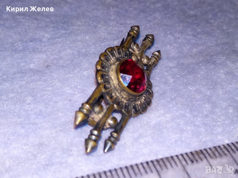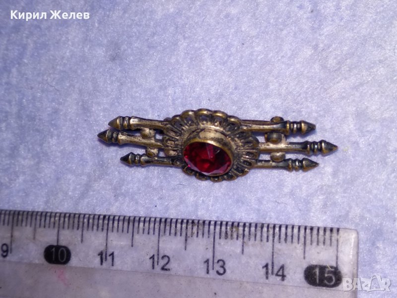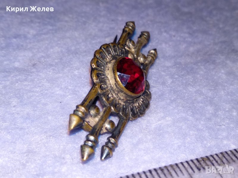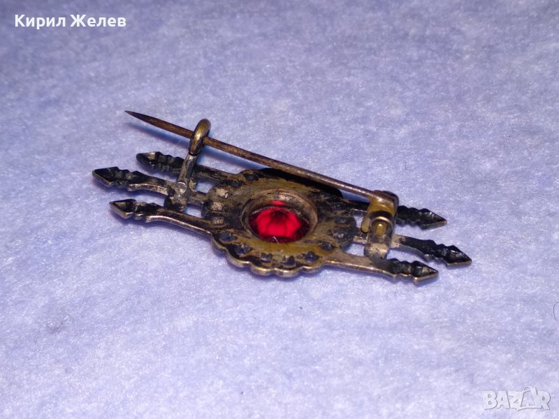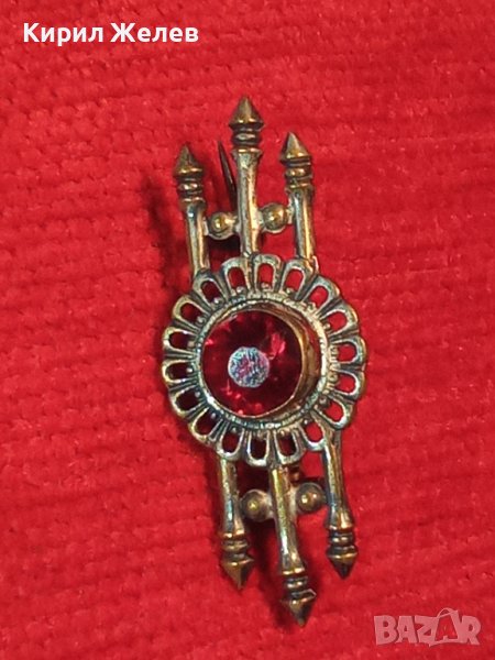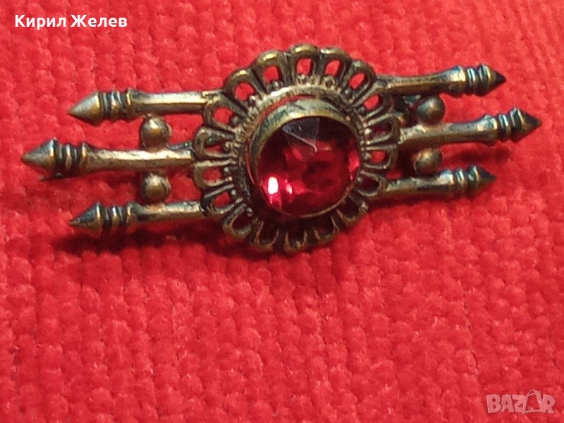 СТАРИННА СКЪПОЦЕННА ПОСРЕБРЕНА АЖУРНА РЕТРО БРОШКА с ЮВЕЛИРНО РЪЧНО ФАСЕТИРАН КАМЪК ГРАНАТ 38599